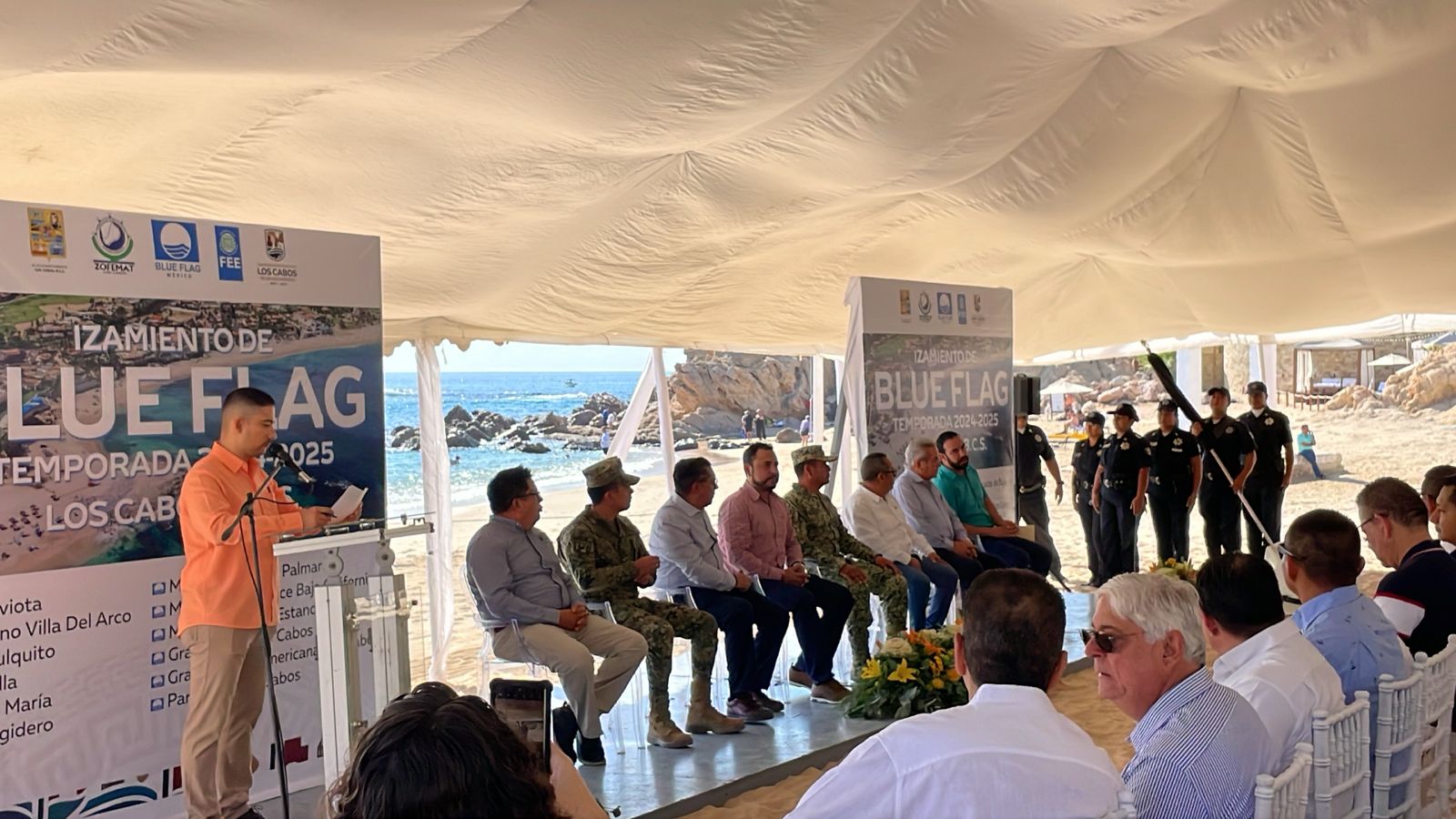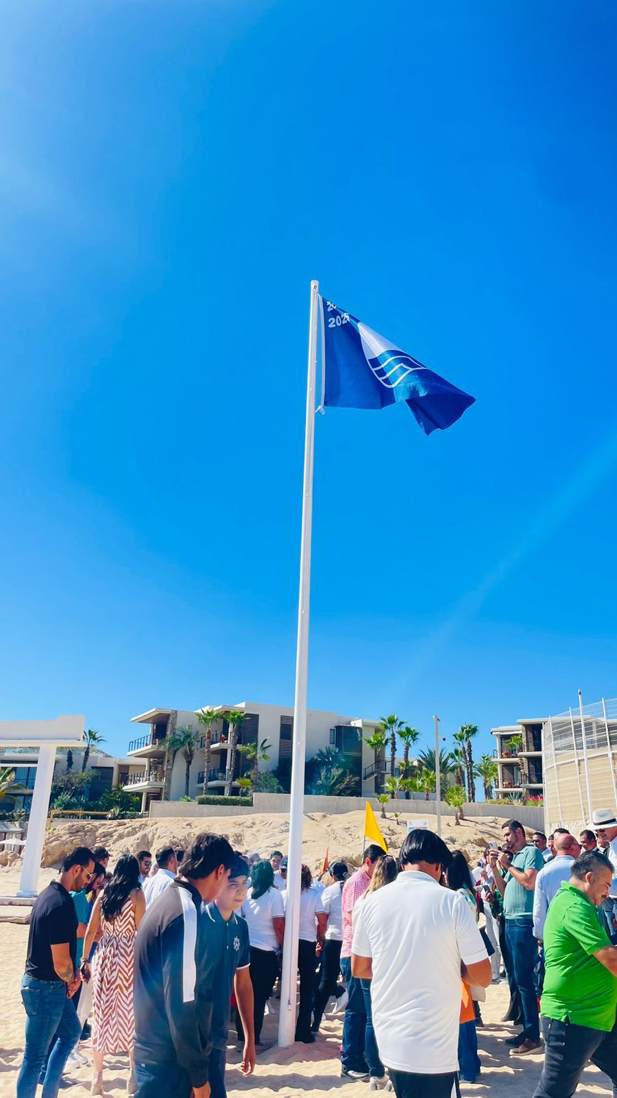 Los Cabos, B.C.S. – En una emotiva ceremonia, el presidente municipal, Arq. Christian Agúndez Gómez, encabezó el izamiento de la bandera “Blue Flag” en Playa El Chileno, marcando la apertura de la temporada 2024-2025 para esta certificación internacional.